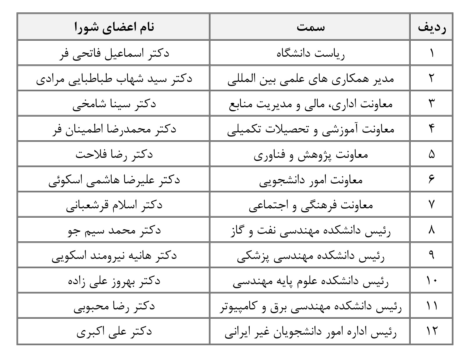شورای بین الملل ارسال به دیگران نام شما ایمیل شما ایمیل دریافتکننده ارسال انصراف شورای بین الملل دانشگاه در تاریخ 28 اسفند 1402، با مصوبه هیات رئیسه دانشگاه به منظور مشارکت در مدیریت فعالیتهای بینالمللی دانشگاه و با اعضای زیر ایجاد گردید. اعضای شورا
