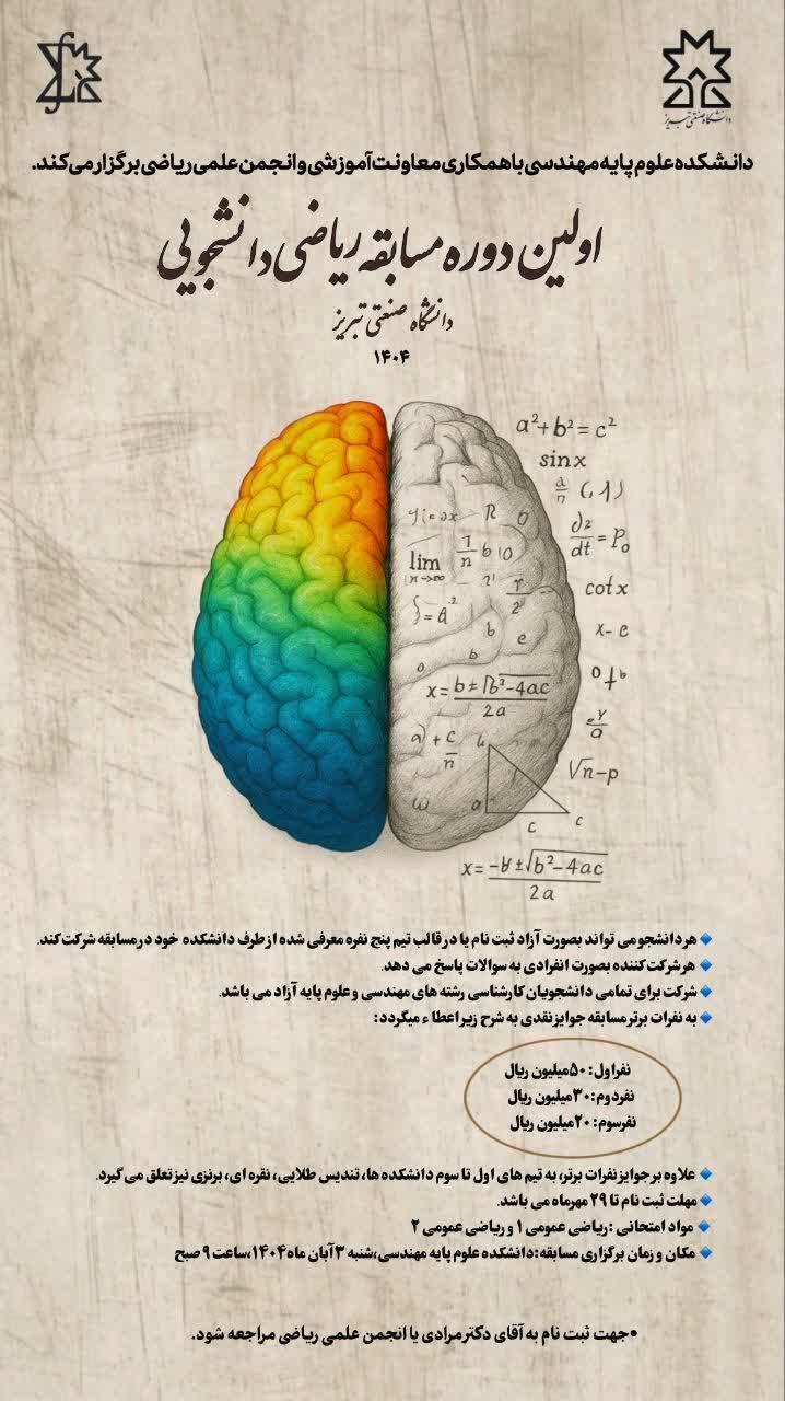 اولین دوره مسابقه ریاضی دانشجویی ۱۹ مهر ۱۴۰۴ | ۱۴:۴۸ کد : ۱۴۶۵ اطلاعیه ها ارسال به دیگران نام شما ایمیل شما ایمیل دریافتکننده ارسال انصراف تعداد بازدید:۳۴۱