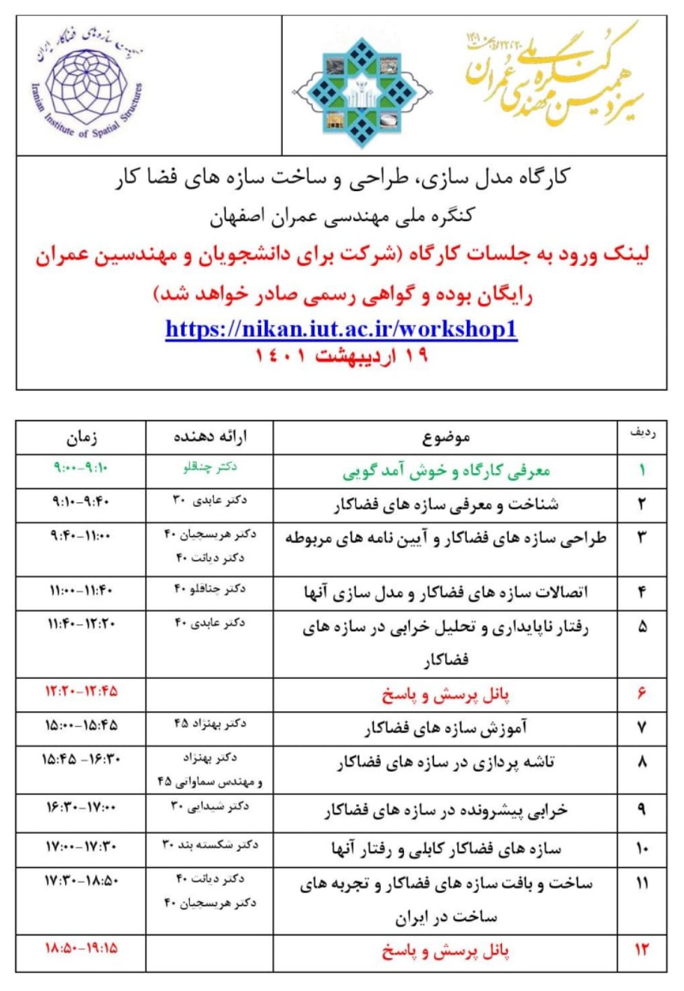 برنامه کارگاه آموزشی با عنوان مدل سازی، طراحی و ساخت سازه های فضاکار دوشنبه ۱۹ اردیبهشت ۱۴۰۱