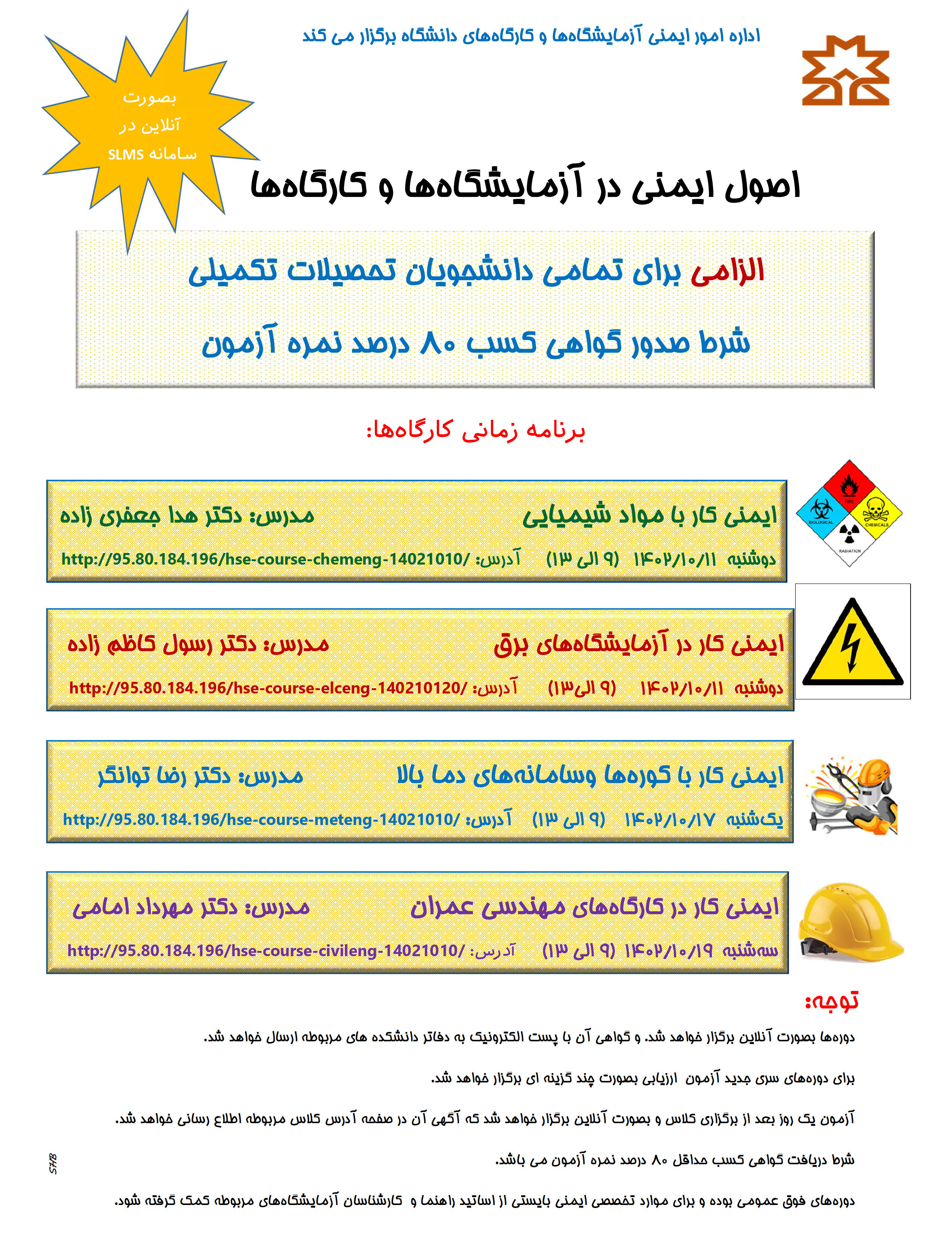 امور ایمنی آزمایشگاه و کارگاههای دانشگاه صنعتی سهند برگزار می کند: