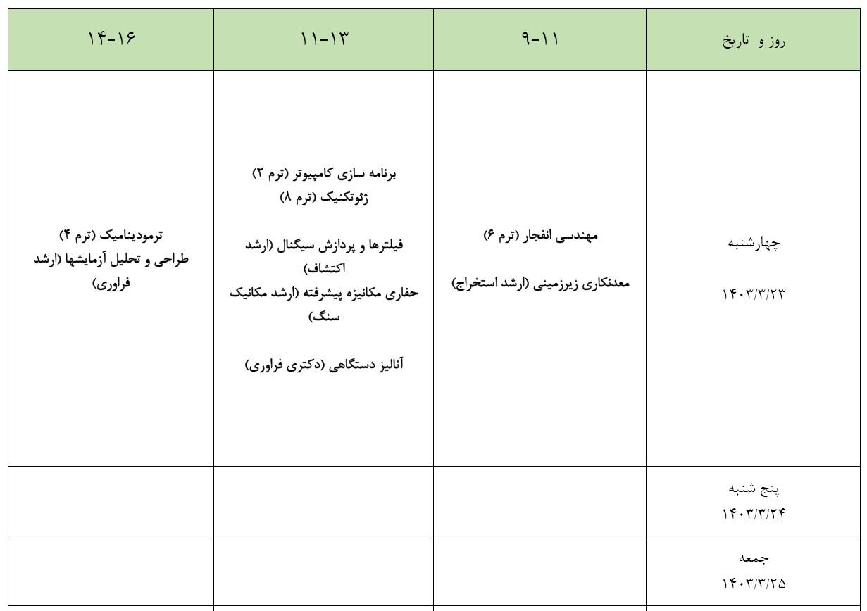 برنامه امتحانات کارشناسی نیمسال دوم ۱۴۰۳ - ۱۴۰۲