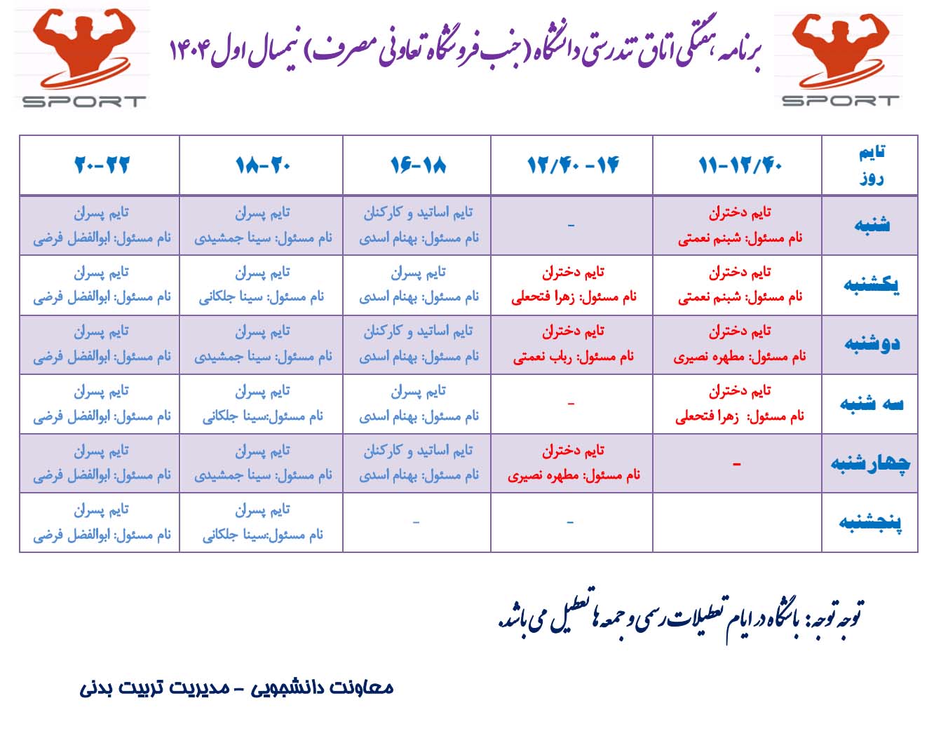 برنامه اتاق تندرستی دانشگاه نیمسال اول سال 1404 ارسال به دیگران نام شما ایمیل شما ایمیل دریافتکننده ارسال انصراف